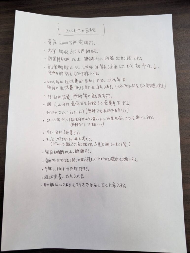 一応2026年の目標の紙と2025年の紙の画像を貼っておきます!!