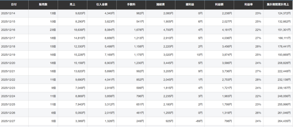 日別売上げ額も段々上がってきており